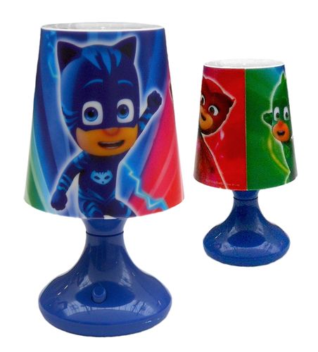 Dziecięca stojąca lampka Pidżamersi. Zaprojektowana i przystosowana specjalnie dla dzieci w rewelacyjnym wzorze kultowej bajki. Przenośna, lekka, odporna na stłuczenia, wykonana z wysokiej jakości tworzywa, zasilana na baterie 3xAA z żarówką LED. Bardzo łatwa w obsłudze, aby załączyć światełko, wystarczy wcisnąć guzik umieszczony na nóżce lampki. Doskonale sprawdzi się na dziecięcym biurku czy szafce nocnej.