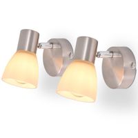 Te 2 kinkiety mają dyskretną formę w stylu retro i poprawią wygląd każdego pomieszczenia. Lampę można z łatwością zamontować na ścianie lub na suficie dzięki wysokiej jakości satynowej podstawie z niklowanego metalu. Szklane klosze tworzą przyjemny efekt, ponieważ emitowane przez nie światło oświetla każdy zakątek pokoju. Kąt padania światła można z łatwością zmienić, w zależności od potrzeb. Dostawa obejmuje 2 lampy, które są odpowiednie do żarówek E14, ale prosimy mieć na uwadze, że żarówki nie wchodzą w skład przesyłki.