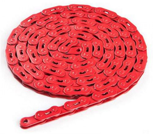 Mocny i bardzo lekki łańcuch 1-rzędowy. Do zębatki 1/8". Wszystkie ogniwa niklowane a w nowych wersjach kolorystycznych pokryte specjalną nano-powłoką o metalizowanym wykończeniu. Ażurowe ogniwa wewnętrzne i zewnętrzne. Drążone bolce.