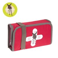 Podręczna apteczka, w której pomieścisz nie tylko witaminę D czy leki przeciwzapalne, ale także akcesoria kosmetyczne malucha. W środku znajdziesz: dużą, zapinaną na suwak przeźroczystą komorę z usztywnionej folii na buteleczki czy kremy, 1 kieszeń z siatki, również zapinaną na suwak – idealną np. na plasterki oraz szereg (10) elastycznych gumek na mniejsze rzeczy, jak tubka z kremem czy krople do nosa. Apteczka jest czerwona z białym znakiem nawiązującym do logo Lassig, składa się do poręcznej wielkości, zamyka na rzep oraz szeroką elastyczną gumę w biało-grafitowe pasy.