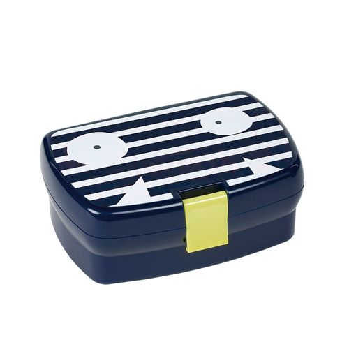 Pudełko śniadaniowe niemieckiej marki LASSIG przyda się nie tylko przedszkola czy szkoły, ale również podczas spacerów i wycieczek. Jest pojemne i wygodnie podzielone na część główną, na dole, która pomieści kanapki oraz wyjmowany dwudzielny pojemnik na przekąski, np. pokrojone owoce czy wafelki, który można umieścić w górnej przestrzeni box'a. Pudełko można wygodnie zamknąć i otworzyć – za pomocą szerokiego klipsa. Nie otworzy się jednak samoistnie, jest szczelne i solidne. Ma też ergonomiczny kształt. Zmieści się nawet do małego plecaka.
