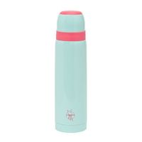 Ma pastelowo-niebieski kolor i kontrastowe, różowe detale (gumowy brzeg i wierzch kubeczka oraz logo w dolnej części termosu)