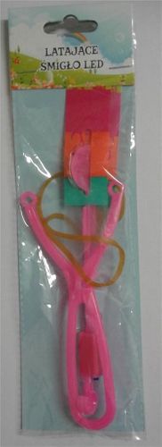 Latające śmiglo to zabawka, która za pomocą wyrzutni z bardzo elastyczną gumką wystrzeliwujesz prosto w niebo. Zabawka jest wyposażona w diodę LED, którą można włączyć w trakcie zabawy po zmroku. Dioda świeci w trakcie lotu i zapewnia niesamowite sfskty wizualne. Wystrzelone śmigło spada w pobliżu miejsca, z którego zostało wystrzelone. Zalecamy użycie zabawki na świeżym powietrzu.
