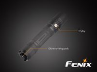 Latarka Fenix PD35 Tac to propozycja dla fanów taktyki, którzy chcą jednocześnie mieć typową latarkę EDC. Zbudowana na podstawie modelu PD35, na pierwszy rzut oka różni się przełącznikiem zmiany trybów - zamiast gumowanego mamy metalowy. Służy on nie tylko do zmiany natężenia światła, ale też do przechodzenia w tryb taktyczny (należy przytrzymać przełącznik przez około 5 sekund, do momentu, aż dwukrotnie zamruga). Wówczas włącza się z największym natężeniem światła, a przełącznik trybów staje się nieaktywny. Dzięki temu nie ma ryzyka przypadkowej zmiany natężenia.