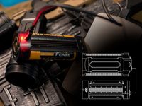Latarka zasilana jest za pośrednictwem dwóch akumulatorów 18650, montowanych w specjalnym adapterze, który po wysunięciu pełni również rolę ładowarki. Zintegrowany port Micro USB umożliwia ładowanie akumulatorów bez konieczności zakupu standardowej ładowarki. W tym celu wystarczy jedynie znajdujący się w zestawie kabel USB oraz zewnętrzne źródło prądu np. power bank. Diodowy wskaźnik sygnalizuje ładowanie (kolor czerwony) oraz pełne naładowanie akumulatora (kolor czerwony). Latarka Fenix TK35 UE 2018 obsługuje tylko akumulatory 18650 z wystającym plusem. Konstrukcja zasobnika na akumulatory nie pozwala na używanie akumulatorów z płaskim plusem. Zalecamy używanie oryginalnych akumulatorów Fenix.