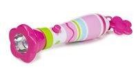 Poręczna latarka posiada przycisk zapalania i miejsce na dwie baterie AA (niedołączone do zestawu). Żywa kolorystyka latarki i kształt kwiatuszka będzie idealnydla dziewczynki i będzie się wyróżniać na tle innych zabawek.