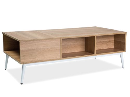 Opis:MDF, stelaż: metal, kolor: dąb / biały