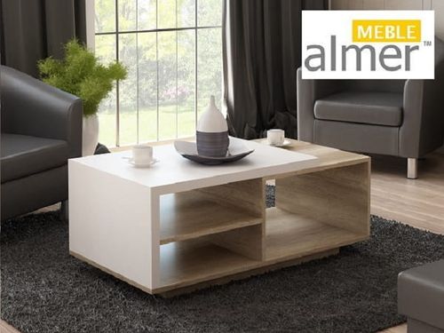 Ława jest wykonana z płyty obustronnie laminowanej o grubości 18mm. Krawędzie mebla wykończone są obrzeżem PCV / ABS zabezpieczającym elementy ławy przed uszkodzeniami mechanicznymi. Blat ławy wykonany jest z płyty wysoki połysk w kolorze białym.