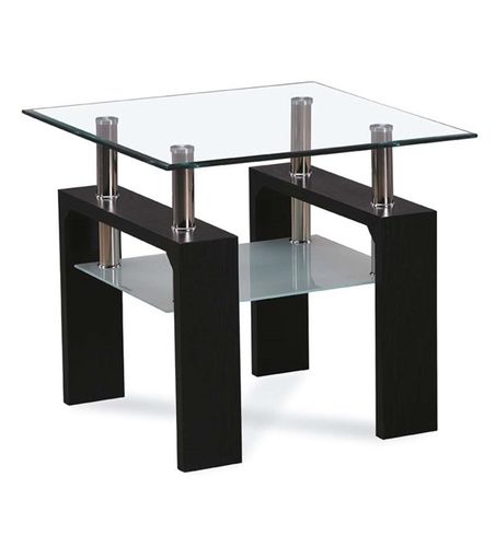Szklana ława z nogami wykonanymi z MDF w okleinie drewnopodobnej. Blat szkło hartowane, dolna półka szkło mleczne, całość uzupełniają elementy chromowane. Kolor venge. Ta ława jest wspaniałą ławą który nie tylko fantastycznie się prezentuje ale jest również bardzo trwały.