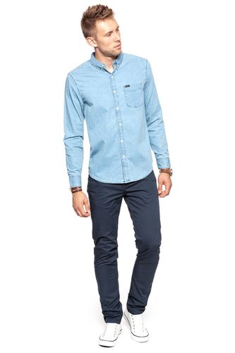 Przyjemny w dotyku, mocny i solidny jeans. Jednolity, błękitny odcień, sprawia pożądane wrażenie estetyczne. Długi rękaw i regularny krój zapewniają niepowtarzalny komfort i wygodę. Drobne przetarcia materiału na wykończeniach i szwach nadają koszuli unik