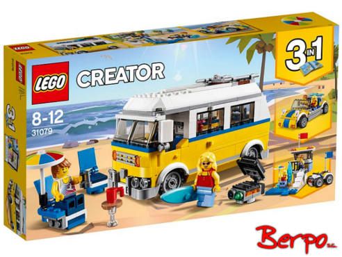 Ruszaj na wakacyjne przygody w zestawie Van surferów z samochodem kempingowym z jasnożółtych, białych i niebieskich klocków. Pojazd ma mnóstwo realistycznych detali, takich jak bagażnik na dachu na dołączoną deskę surfingową, składany leżak i krzesło, parasol, stolik i grilla. Zdejmij dach i bok vana, by zajrzeć do szczegółowego wnętrza ze składanym łóżkiem, telewizorem i aneksem kuchennym. Ten model konstrukcyjny LEGO® Creator 3 w 1 można przebudować na wieżę ratowniczą lub łazik plażowy, by przeżyć jeszcze więcej przygód nad morzem.