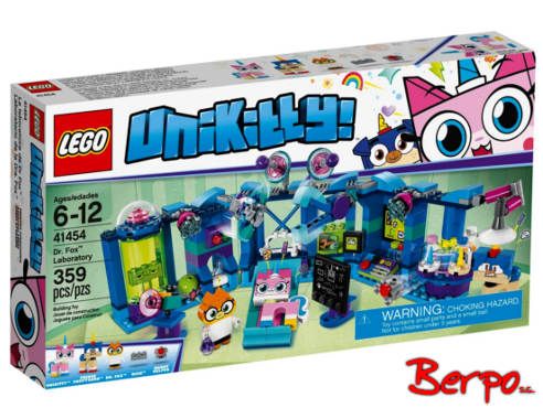 Przeżyj ponownie ulubione sceny z najbardziej radosnego, błyszczącego i kolorowego serialu telewizyjnego na antenie w zestawie LEGO® Unikitty™! 41454 Laboratorium dr Lisiczki™. Ten ciekawy i zabawny zestaw zawiera mnóstwo emocjonujących funkcji, takich jak skaner błyszczącej materii z działającym taśmociągiem, przechylany stół do badań, ruchome robotyczne ramiona, ruchome światła, obracany uchwyt na kanister oraz pistolet zmniejszający dr Lisiczki. W zestawie znajdziesz też cztery figurki do zbudowania oraz figurkę Ricka.