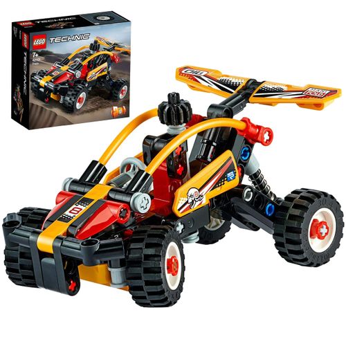 Świetny zestaw LEGO® Technic 42101 Łazik to podwójna dawka radości. Gdy mali kierowcy będą pędzić łazikiem przez wydmy, ich wyobraźnia wejdzie na wysokie obroty. A to wcale nie koniec zabawy! Sprytna konstrukcja łazika pozwala przerobić go na elegancką wyścigówkę, więc dzieci czeka kolejna porcja przygód. Zestaw LEGO z mnóstwem rzeczy do odkrycia Atrakcyjna kolorystyka? Jest. Naklejki z czaszkami? Są. Działający układ kierowniczy i zawieszenie? No jasne! Szukasz dynamicznej zabawki o wielu funkcjach, która spodoba się dzieciom? W tym zestawie atrakcji nie brakuje. Zabawki do zbudowania, które pomogą dzieciom rozwinąć nowe umiejętności Zestawy konstrukcyjne LEGO Technic są idealne dla fanów LEGO, którzy pragną nowych wyzwań. Budowanie i zabawa modelami przyniosą dzieciom mnóstwo frajdy, bo te pojazdy wyglądają i jeżdżą jak prawdziwe. Każdy zestaw zawiera drukowane instrukcje, ale bezpłatna aplikacja LEGO Life oferuje także nowy sposób budowania z użyciem Instructions PLUS. Są to interaktywne instrukcje z funkcjami obracania i przybliżania widoku, dzięki którym nawet młodsze dzieci poradzą sobie z budową tej zabawki technicznej.