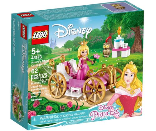 Uroczy zestaw LEGO® ǀ Disney 43173 Królewska karoca Aurory zaprasza na wspólne przygody wszystkich fanów filmowej księżniczki i jej zaprzyjaźnionej sowy. Znajdziesz w nim wspaniałą biało-różową karocę z przezroczystym dachem, stolik oraz tort i świeczkę. Wspaniała zabawa i świętowanie z wcielaniem się w postacie Ten śliczny zestaw zainspiruje dzieci do kreatywnej zabawy w odgrywanie ról. Zestawem można bawić się niezależnie lub łączyć go z innymi zestawami LEGO ǀ Disney, aby emocji i możliwości było jeszcze więcej. Do tego świetnie nadaje się on na prezent gwiazdkowy lub urodzinowy dla każdego małego fana księżniczek Disneya. Łatwa zabawa ulubionymi postaciami i akcesoriami W tym zestawie Disney Princess na dzieciaki czeka minilaleczka Aurora oraz figurka LEGO sowy, więc zabawa może się rozpocząć natychmiast! Jest tam również kilka inspirujących elementów, które pobudzą wyobraźnię dzieci i zachęcą je do samodzielnego wymyślania rozrywek i przygód.