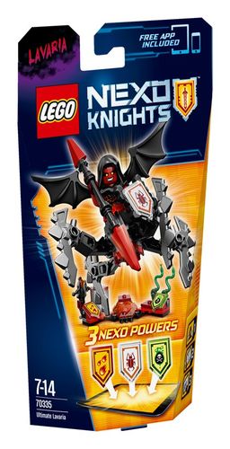 A któż to przemyka od cienia do cienia? Ma skrzydła i przerażające pajęcze nogi... Ach, to Niepokonana Lavaria tropi ofiarę. Skocz na głowy swoich wrogów a potem oddaj salwę ognistych kul z kuszy na klocki. Niedobitki załatwisz, wysyłając do walki jadowite węże. Podnieś swoją wartość bojową, skanując tarcze 3 mocy NEXO. Zbierz jak najwięcej unikalnych zdolności w postaci cyfrowej, aby przechytrzyć wrogów w darmowej aplikacji LEGO® NEXO KNIGHTS™: MERLOK 2.0. Zeskanuj 3 moce NEXO: Żukowa bomba, Spalenie i Jadowite ukąszenie.