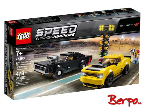 Zbuduj niezwykły zestaw LEGO® Speed Champions 75893 2018 Dodge Challenger SRT Demon oraz 1970 Dodge Charger R/T i urządź niezapomniany wyścig bolidów, który zainteresuje zarówno dzieci, jak i dorosłych. Dodge Challenger ma dwa komplety felg, realistyczne detale i dekoracyjne naklejki, a kultowy amerykański „muscle car” Dodge Charger ma zdejmowaną turbosprężarkę i wymienną pokrywę silnika. Ten wyścigowy zestaw uzupełniają bożonarodzeniowa choinka z lampkami sygnalizującymi start wyścigu, minifigurka porządkowego z flagą w kratkę oraz dwie minifigurki kierowców.