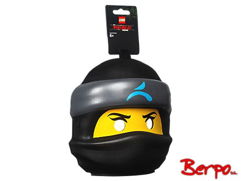 Maska Nyi w kształcie głowy minifigurki jest wytłoczona z miękkiej pianki, ma siateczkę na oczy i zapina się na zatrzask.