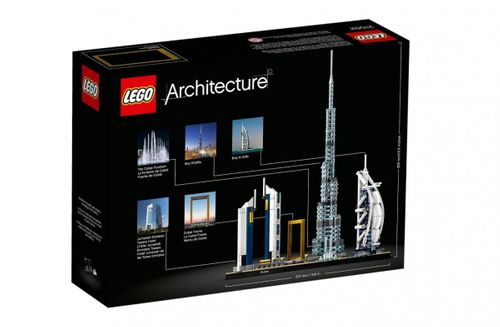 - Zawiera podstawkę ekspozycyjną z nazwą Dubai. Więcej ciekawostek o Dubaju i informacje o projektancie modelu można znaleźć w broszurze (dostępna tylko po angielsku; tekst w pozostałych językach można pobrać ze strony LEGO.pl/architecture).
