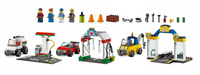 - W zestawie cztery minifigurki LEGO® City: Harl Hubbs, mechanik, pracownik stacji paliw i kierowca samochodu sportowego.