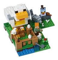 - W zestawie scenka z kurzą fermą z gry Minecraft™ do zbudowania. Kurnik ma nadbudówkę, z której jajka spadają prosto do skrzynki, a także ozdobną flagę z kurczakiem, wybieg z otwieraną bramką, piec oraz fragment terenu z wodą oraz trawą i roślinami.