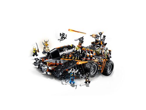 Pomóż nastoletniemu Wu, Jayowi i Zane’owi w walce z czołgiem w zestawie LEGO® NINJAGO® Dieselnauta. Pojazd wyposażony jest w obrotowe wieżyczki ze sprężynowymi działkami, otwierany kokpit z miejscem na minifigurkę, platformę dla minifigurek z całkowicie otwieranym dachem, działający dźwig, więzienie oraz ukryty stojak na broń. W zestawie jest też posąg ze wszystkimi czterema częściami smoczej zbroi do zebrania oraz siedem minifigurek LEGO NINJAGO z bronią.