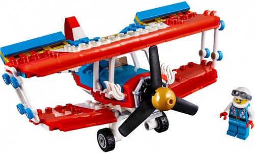- W zestawie jest klasyczny dwupłatowiec z kokpitem dla minifigurki, obracającym się śmigłem i podwoziem na kołach.