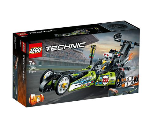 Podaruj swojemu małemu kierowcy dragster z zestawu 42103 LEGO® Technic, który będzie ciekawym wyzwaniem. Nauka budowania modelu dragstera będzie dla dzieci świetną zabawą. Zabawa nie kończy się na budowaniu. Ustaw mały sygnalizator ze światłami, a potem naciągnij napęd zabawki i puść ją, by wystrzeliła przed siebie. Prezenty LEGO z mnóstwem akcji Odważne kolory tego samochodu przypadną dzieciom do gustu. Czy widzisz płomienie wydobywające się z rury wydechowej? Całkiem jak w prawdziwym dragsterze! Ten zestaw 2 w 1 pozwoli dzieciom zbudować dragstera i przerobić go na hot roda z napędem pull-back, a przy tym rozwinąć umiejętności rozwiązywania problemów. Który pojazd podoba Ci się najbardziej? Dragster, który staje na tylnych kołach, czy totalnie odlotowy hot rod?