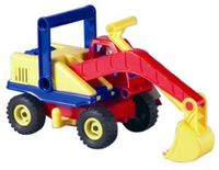 Kolorowa koparka z ruchomym ramieniem i blokadą mechanizmu obrotowego. W zestawie figurka kierowcy koparki. Wykonany z najwyższej jakości tworzywa sztucznego, co wpływa korzystnie na jej funkcjonalność i żywotność. Zabawka idealnie nadaje się do zabawy w piaskownicy. Duże koła znacząco ułatwiają poruszanie się w trudnym terenie.