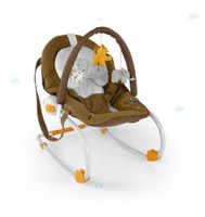 Znajduje się tu także pałąk z trzema pluszowymi zabawkami oraz płozy umożliwiające bujanie dziecka.