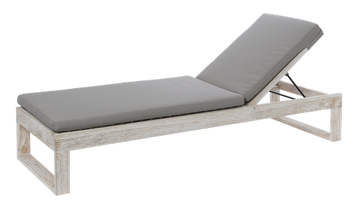Leżak KONGO z regulowanym zagłówkiem i beżowym materacem. Leżak na stabilnej, szerokiej konstrukcji wykonanej z bielonego drewna teakowego, które charakteryzuje się dużą odpornością na panujące w ogrodzie warunki atmosferyczne, takie jak duże nasłonecznienie, czy deszcz. Drewniany leżak KONGO o wymiarach 210x70x35 cm to kwintesencja wygody i elegancji. Beżowy materac na całej długości leżaka wykonany z materiału olefin, który także posiada dużą odporność i wytrzymałość na zmienne warunki atmosferyczne. Możliwość regulacji zagłówka sprawia, że można na nim wypoczywać siedząc lub leżąc. Leżak zapewnia wygodę i odpoczynek w ciepłe, letnie dni.