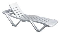Nowoczesny leżak wykonany z polipropylenu, zabezpieczony przed promieniami UV. Dzięki użytemu materiałowi otrzymujemy wysoką trwałość na odbarwienia od słońca. Konstrukcja, dzięki zastosowaniu innowacyjnych metod produkcji (tworzywo, przy tłoczeniu leżaka wpływa przez każdą poprzeczkę leżaka) uzyskano bardzo dużą wytrzymałość na pęknięcia. Specjalną funkcją leżaka są kółka (wykonane z trwałego tworzywa ABS) umieszczone pod tylnymi stopkami, dzięki którym, po podniesieniu leżaka za przód można podnieść oparcie do pozycji siedzącej. Wysokość: 47 cm Szerokość: 63 cm Głębokość: 188 cm
