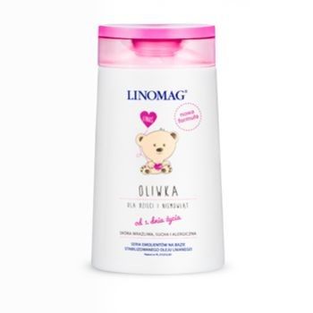 Oliwka LINOMAG® przeznaczona jest do codziennej pielęgnacji skóry dzieci i niemowląt od pierwszych dni życia. Nawilża i natłuszcza skórę dziecka, łatwo się rozprowadza na jej powierzchni tworząc niewidoczną warstwę ochronną. Dzięki zawartości witaminy F oliwka LINOMAG® łagodzi podrażnienia i przyspiesza regenerację naskórka. Polecana szczególnie po kąpieli dziecka do stosowania na powierzchnię całego ciała.