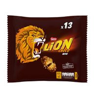 Lion Mini zaspokaja mały głód pomiędzy posiłkami.Wafel nadziewany karmelem (34,3%) i płatkami pszennymi (10,6%), oblany mleczną czekoladą (37,2%).