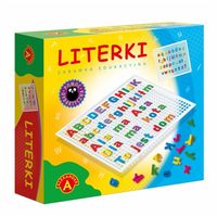"Literki" to zbiór małych i dużych literek, z których każda posiada element umożliwiający wpinanie ich w otwory ażurowej tablicy.