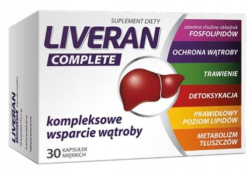 Liveran Complete jest połączeniem choliny i składników roślinnych. Zawarta w suplemencie diety cholina wchodzi w skład fosfolipidów, obecnych w każdej komórce jako składnik błon komórkowych. Pomaga w prawidłowym funkcjonowaniu wątroby i przyczynia się do utrzymania prawidłowego metabolizmu tłuszczów. Witamina B1 i B2 przyczyniają się do utrzymania prawidłowego metabolizmu energetycznego, ponadto witamina B2 pomaga w ochronie komórek przed stresem oksydacyjnym (przed szkodliwym działaniem wolnych rodników). Wyciąg z ostropestu zawierający sylimarynę oraz wyciąg z cytryńca chińskiego wspomagają prawidłowe funkcjonowanie wątroby i przyczyniają się do ochrony wątroby przed działaniem czynników szkodliwych m. in. nieprawidłowa dieta, używki, leki. Ostropest wspiera oczyszczanie organizmu i wspomaga wątrobę w detoksykacji. Wyciąg z karczocha pomaga w prawidłowym funkcjonowaniu wątroby i wpiera detoksykację. Wspomaga utrzymanie prawidłowego poziomu lipidów we krwi.
