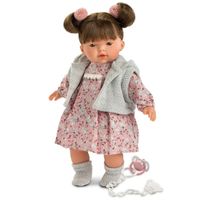 Lalka Isabela płacząca, 33 cm Przedstawiamy Państwu przepiękne hiszpańskie lalki z najnowszej kolekcji Llorens. Autentyczne i doskonale odtworzone kształty lalek oraz szczegóły twarzy takie jak oczy, usta, włosy, na pewno zachwycą każdą małą i dużą dziewczynkę! Doskonały dobór wysokiej jakości ubrań, ich kolor, krój, faktura i liczne detale sprawiają, że lalki te wygladają jak żywe. Dlatego do najlepsze zabawki dla dziewczynek w każdym wieku. Hiszpańska lalka Isabela 33292 ma 33 cm i wykonana jest z delikatnego, przyjemnego w dotyku winylu. Jej miękki brzuszek wypełniony jest wyściółką. Po wyjęciu smoczka Isabela zapłacze i powie "mama, papa". Lala ma brązowe oczy otwarte na stałe oraz brązowe, półdługie, proste włosy z grzywką. Włoski są związane w dwa kucyczki frotkami z różowymi pomponami. Isabela ubrana jest w doskonałej jakości różową sukienkę do kolan, w szaro-białe kwiaty. W komplecie znajdują się także dzianinowy bezrękawnik z kapturkiem oraz szare skarpetki. Lalka zapakowana jest w eleganckie, kartonowe pudełko, idealne na prezent. Manufaktura Llorens od lat dokłada wszelkich starań aby ich wyroby były doskonałe, autentyczne i piękne w każdym detalu.Wiekod 3 lat