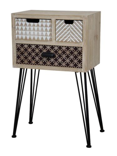 Specyfikacja produktu: Symbol: LO021 Wymiary: 50 x 31 x 74 Kolekcja: Loano Materiał: Drewno, fornir, MDF, metalowe uchwyty i nogi Kolor: Surowe jasne drewno, czarne nogi, biały i brązowy deseń na szufladach Montaż: Mebel wymaga montażu nóg Wysyłka: 24h Szafka LOANO Meble z kolekcji LOANO to nowoczesna forma z dodatkiem prowansalskich akcentów w postaci bielonych korpusów. Prosty kształt uzupełniają oryginalne wzory na szufladach. Połączenie drewna, metalowych nóżek i okuć a także oryginalne wykończenie sprawiają, że kolekcja LOANO będzie pięknie się prezentowała zarówno w nowoczesnych jak i klasycznych wnętrzach. Kolekcja składa się z konsol, komód, szafki, regału i biurka. Szerokość 50 Głębokość 31 Wysokość 74 Kolekcja Loano