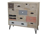 Specyfikacja produktu: Symbol: LO07 Wymiary: 94 x 36 x 91 Kolekcja: Loano Materiał: Drewno, fornir, MDF, metalowe uchwyty i nogi Kolor: Surowe jasne drewno, czarne nogi, brązowy, biały, czarny i czerwony deseń na szufladach Montaż: Mebel wymaga montażu nóg Wysyłka: 24h Komoda LOANO Meble z kolekcji LOANO to nowoczesna forma z dodatkiem prowansalskich akcentów w postaci bielonych korpusów. Prosty kształt uzupełniają oryginalne wzory na szufladach. Połączenie drewna, metalowych nóżek i okuć a także oryginalne wykończenie sprawiają, że kolekcja LOANO będzie pięknie się prezentowała zarówno w nowoczesnych jak i klasycznych wnętrzach. Kolekcja składa się z konsol, komód, szafki, regału i biurka. Szerokość 94 Głębokość 36 Wysokość 91 Kolekcja Loano
