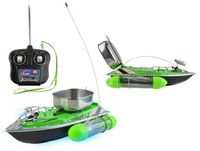 Łódka posiada dwie śruby napędowe, które umożliwiają przewożenie aż do 1200g zanęty. Stabilność pływającego drona gwarantują dwie, montowane po jego bokach bojki, które zapewniają sprawny transport zanęty nawet na wymagających wodach, z falami nie przekraczającymi wysokości 10cm. Pojemnik na zanętę umiejscowiony jest w centralnej, górnej części łódki, dzięki czemu zmniejszone jest ryzyko jego zawilgocenia nawet w trakcie przewożenia go na dalsze odległości. Miseczka zanętowa wykonana została ze stali nierdzewnej, co znacząco wydłuża jej trwałość i umożliwia bezproblemowe wykorzystywanie oraz łatwe czyszczenie.