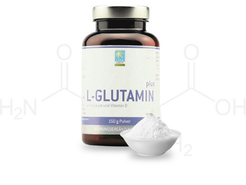 Naturalny proteinogenny aminokwas L-Glutamina, ważny dla zachowania puli aminokwasów osocza w połączeniu z witaminą D pomagającą w utrzymaniu prawidłowego poziomu wapnia we krwi. Zawiera najwyższej jakości czystą L-Glutaminę w połączeniu z witaminą D celem właściwego uzupełnienia codziennej diety. Fizjologiczne funkcje substancji czynnej L-glutamina stanowi główne paliwo układu immunologicznego, a także jest składnikiem antyoksydantu – glutationu. Wysokie stężenie glutaminy wspomaga proces regeneracji zasobów glikogenu. Stymuluje ona enzymy odpowiedzialne za proces glukogenezy, czyli procesu przekształcania niecukrowcowych, prekursorów np. aminokwasów, gliceroli czy mleczanów w glukozę. Witamina D pomaga w prawidłowym wchłanianiu i wykorzystywaniu wapnia, w utrzymaniu zdrowych kości i zębów oraz w prawidłowym funkcjonowaniu mięśni. Witamina D bierze udział w procesie podziału komórek, pomaga też w prawidłowym funkcjonowaniu układu odpornościowego. Porcja produktu do spożycia w ciągu dnia zawiera: Składniki 3,3 g % RWS1) (1 miarka) L-glutamina 3298 mg Witamina D3 5 µg 100% 1)%RWS - Referencyjna wartość spożycia dla przeciętnej osoby dorosłej (8 400 kJ/2 000 kcal).
