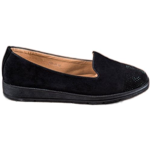 Klasyczne czarne lordsy damskie. Buty wykonano ze skóry ekologicznej świetnej jakości. Dzięki niewielkiej platformie kobieca sylwetka nabiera lekkości. Brokatowe elementy ozdobne sprawiają, że ten model wygląda naprawdę wyjątkowo. Buty przypadną do gustu każdej miłośnicze klasyki w modzie, która śledzi bieżące trendy.