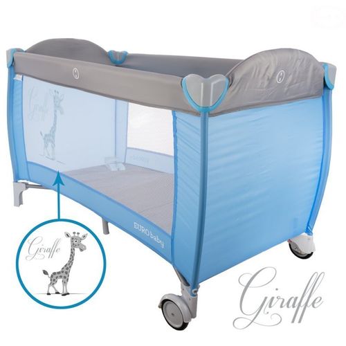 Łóżeczko podróżne jednopoziomowe Giraffe Niebieskie - Eurobaby.