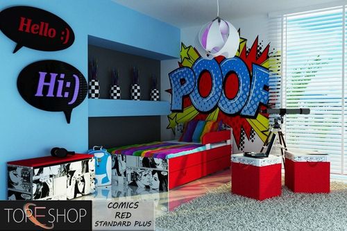 Główne cechy łóżka:• oryginalne wzornictwo• żywe kolory• podłoga pod materac• stabilna rama z wysokogatunkowej płyty meblowej pierwszego gatunku• miłe w dotyku tapicerowane boki• materac ze zdejmowanym pokrowcem wysokości ok.10 cm• tapicerowana szuflada • fronty łóżka tapicerowane tkaniną ,,easy cleaning'' z modnymi motywamiGłówne cechy materaca:Materac VERSITO LUX jest materacem wykonanym w całości z wysoko elastycznej pianki poliuretanowej. Model ten został zrobiony przy użyciu środków, które nie wywołują alergii, dzięki czemu jest bezpieczny dla astmatyków i alergików. Materac został wyposażony w pokrowiec na zamek, który w razie potrzeby można w prosty sposób zdjąć i wyprać w temperaturze 40 stopni. Materace VERSITO LUX mogą być stosowane w łóżkach ze stelażem regulowanym. Dodatkowym atutem wszystkich naszych materacy jest bezklejowa konstrukcja, wolna od kleju, rozpuszczalników chemicznych itp. Wysokość opisywanego materaca około 10 cm(z tolerancją +/- 1 cm).Po dokonaniu zakupu prosimy o informację dotyczącą koloru łóżka wraz z nazwą konkretnego modelu (nazwy zamieszczone są na zdjęciach w lewym dolnym rogu - obok logo TOP E SHOP).Czas wysyłki: do 14 dni