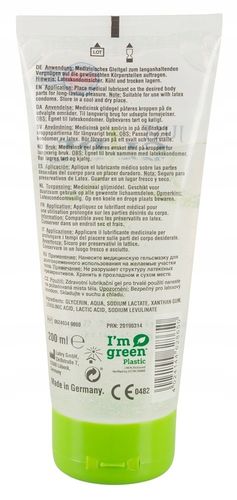 Naturalny organiczny lubrykant na bazie wody w ekologicznej tubce wyprodukowanej na bazie trzciny cukrowej przeznaczonej do kompostowania. Bezzapachowa i bezwonna formuła jest w 100% wegańska, neutralna pod względem ph i bezpieczna w użyciu z prezerwatywami lateksowymi. Lubrykant nie jest tłusty, dzięki czemu można go zmyć bez pozostawiania plam.