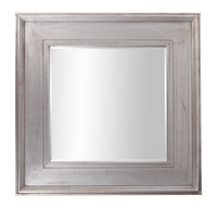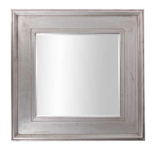 Kwadratowe lustro Bisel Square Silver o wymiarach 95x95cm i grubości 6cm. Rama lustra wykonana z posrebrzanego drewna egzotycznego ma szerokość ok. 20 cm. Fazowaną ramę lustra charakteryzuje załamanie jej krawędzi, co dodaje wyjątkowości. Lustro wykonane z użyciem unikalnego szkła asferycznego doskonale współgra z jasnymi wnętrzami w stylu loftowym.