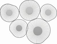 Lustro Manete w kolorze czarnym to efektowne wzornictwo w stylu art deco. Lustro składa się z pięciu nieregularnych części. Każdy element został wyposażony w zwierciadło w kształcie koła. Nieregularny kształt lustra Manete otrzymaliśmy, dzięki połączeniu ze sobą swoistych metalowych rozet. Każda rozeta w centralnym punkcie ma umieszczone okrągłe lusterko. Lustra ścienne w eleganckiej oprawie będą efektownie prezentowały się w salonie, przedpokoju lub w hotelowym holu. Wysokość: 58