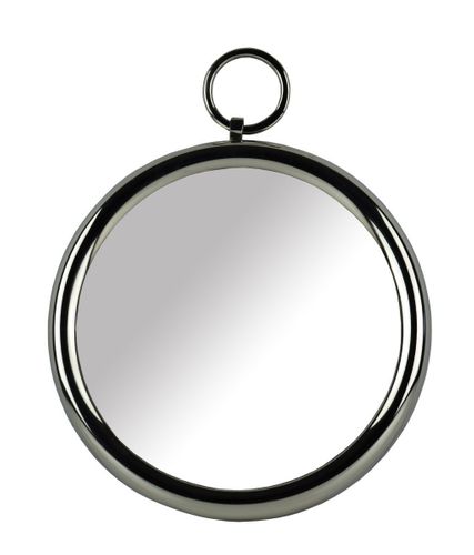 Okrągłe lustro ścienne Clarke z metalową zawieszką w górnej części. Lustro o średnicy 30cm i grubości ramy 3cm. Sama rama wykonana została ze stali nierdzewnej. Srebrne lustro jest niezwykle minimalistyczne i gustowne, dzięki czemu komponuje się z różnorodnymi stylami.