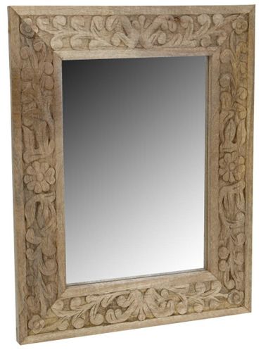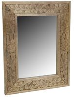 Twoje wnętrze z dekoracyjnym lustrem Shaby powiększy się optycznie, zyska więcej światła oraz nabierze charakteru. Ramę lustra wykonano z drewna z rzeźbionymi wzorami. Rama została dodatkowo zabezpieczona, dzięki temu otrzymano niepowtarzalną strukturę i kolor. Produkt dostępny jest w trzech opcjach kolorystycznych, które dodadzą aranżacji szyku i eleganckiego wykończenia. Wysokość: 50