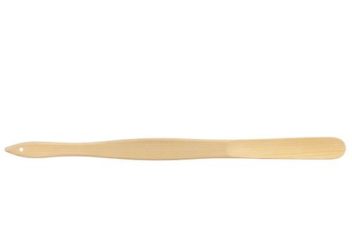 Drewniana łyżka do butów ułatwiająca zakładanie obuwia bez konieczności schylania. W rękojeści otwór przydatny przy zawieszenia łyżki.