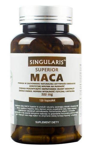 Suplement diety MACA 500mg SUPERIOR to preparat naturalny, zawierający ekstrakt z korzenia Maki. To andyjska roślina pochodząca z rejonów wysokogórskich, jej łacińska nazwa to Lepidium meyeni.Od przeszło 2000 lat jest ważnym elementem codziennej diety mieszkańców Ameryki Północnej. Maca posiada wysoką wartość odżywczą, zawiera wiele substancji mineralnych i witamin, niezbędnych do prawidłowego funkcjonowania organizmu człowieka. Dostarcza organizmowi naturalnych aminokwasów, fitohormonów, witamin i minerałów. Substancje w niej zawarte korzystnie wpływają na gospodarkę hormonalną zarówno kobiet jak i mężczyzn oraz mają pozytywny wpływ na utrzymanie dobrej kondycji psycho – fizycznej. Suplement przeznaczony jest dla osób dorosłych i młodzieży po 12 roku życia.